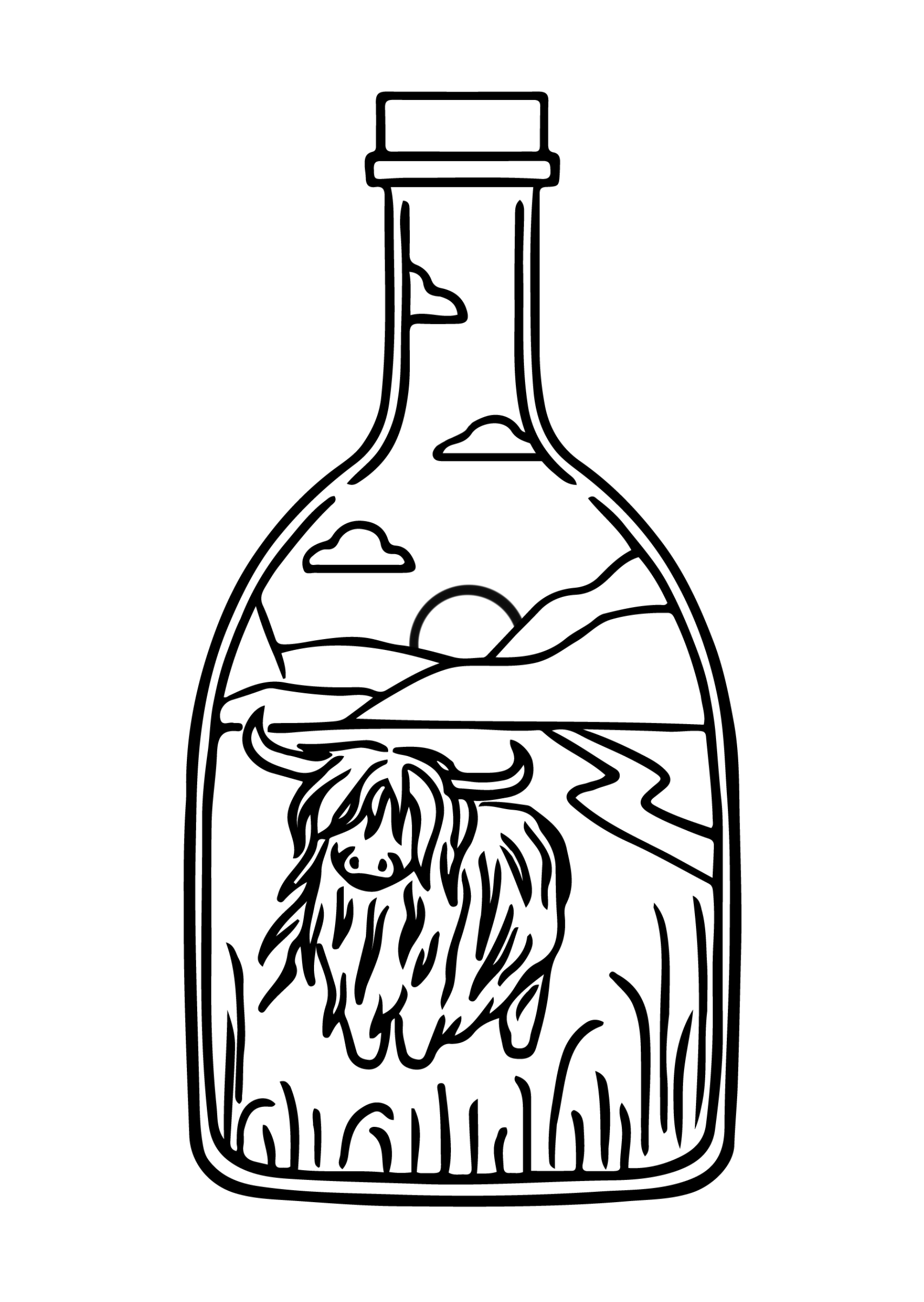 Now, full transparency: even though it might look like I’ve just stuck an object in a bottle and called it a day, I actually try really hard not to do that. I always aim to tell a little story within the bottle—something that helps people connect with the scene, even in a subtle way. That being said though, this might be the closest I’ve ever come to just… sticking something in a bottle 😂. Thankfully, the highland cow is such an iconic figure that seeing one in a field is exactly how most people encounter them so it still worked! But composition wise, this is one of my more simplistic designs and I know in the end it’s not the drawing itself that makes this one so popular—it’s the colours. And wow, did I have to work for those colours!
